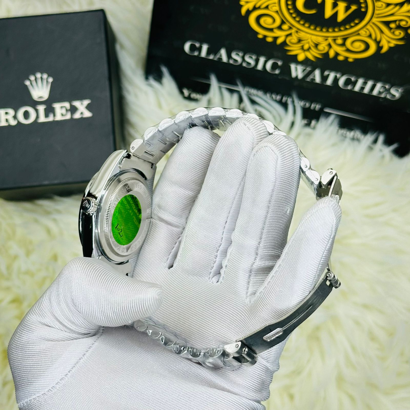 - Code: RLX Full Silver Green Watches